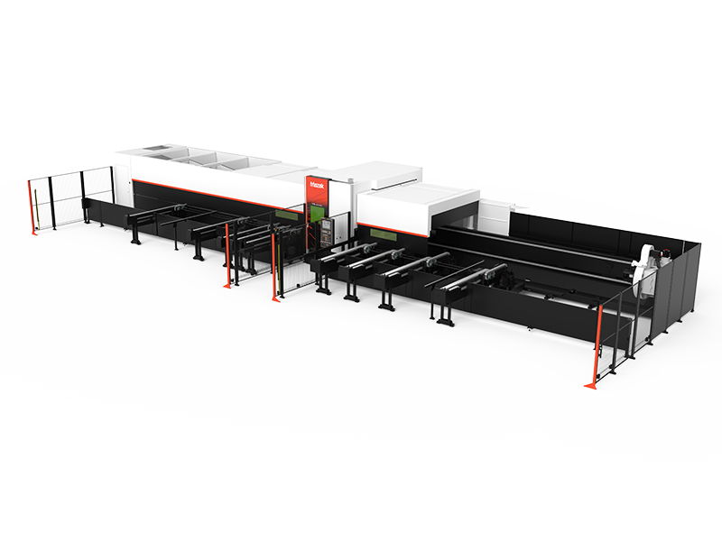 Standard model can load 8 m (26.2') material, also unload 8 m (26.2') finished parts (6 m (19.6') and 12 m (39.4') and 15 m (49.2') loading / unloading units are optionally available).
